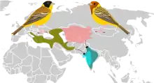| گسترهٔ توزیع تولیدمثلی و زمستانگذرانی زردپره سر سیاه و زردپره سر سرخ | |