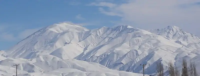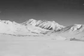 ![]() راست: کوه بلند و چپ: خطالرأس و قلهٔ زرینکوه، سال ۱۹۵۷ از پیست آبعلی | |