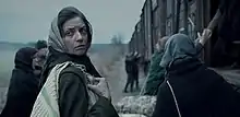 ![]() ایرن (مارینا گرا) و دیگر زنان روستا در حال سوار شدن به قطارِ سیبری | |