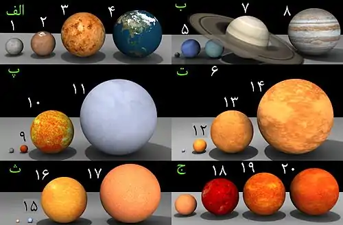 زَمین سومین سیارهٔ منظومهٔ خورشیدی است که در فاصلهٔ ۱۴۹٬۶۰۰٬۰۰۰ کیلومتر از ستارهٔ خورشید قرار دارد. از نظر واژهشناسی ایرانی، زم در زبان اوستایی به معنای سرد بودهاست که با پسوند «ین»، واژهٔ زمین را به معنای «جسم سرد» به وجود آوردهاست.[29] نام این سیاره در زبان عربی «الأرض» (جمع: اراضی) است و نام زمین تنها نام فارسی و غیر عربی یک سیاره در منظومهٔ خورشیدی است که بهطور گسترده در فارسی رایج است. این سیاره چگالترین (به دلیل دارا بودن منابع وسیع آهن و فلزات دیگر) و از نظر بزرگی پنجمین سیاره از هشت سیارهٔ منظومهٔ خورشیدی است. همچنین در میان چهار سیارهٔ سنگی گردان به دور خورشید (عطارد، زهره، زمین و مریخ) زمین بزرگترین آنها است. گاهی از آن با نامهای جهان و تیله آبی نیز یاد میشود.[30] نام لاتین آن Terra است.[یادداشت 7] در منظومهٔ خورشیدی، فاصلهٔ زمین تا خورشید بین فاصلهٔ زهره تا خورشید و فاصلهٔ مریخ تا خورشید است. زمین جزو سیارات داخلی سامانهٔ خورشیدی بهشمار میآید. زمین ششمین جسم در منظومهٔ خورشیدی بر پایهٔ جرم و حجم میباشد.