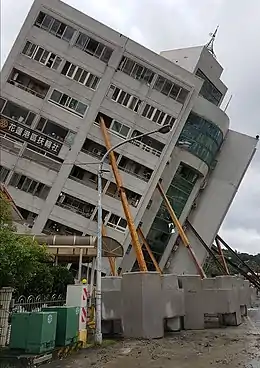 - در فوریه ۲۰۱۶ نیز یک زلزله قوی در شهر تاینان در جنوب تایوان باعث فروریختن چندین ساختمان بلندمرتبه شد و در آن زلزله ۱۱۷ نفر جان باختند.[7]
