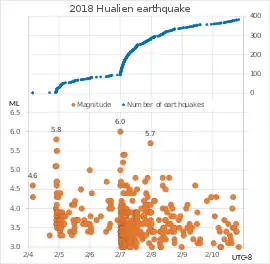 - USGS. "M 6.4 - 22km NNE of Hualian, Taiwan".