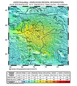 - M7.5 - 45km N of `Alaqahdari-ye Kiran wa Munjan, Afghanistan earthquake.usgs.gov