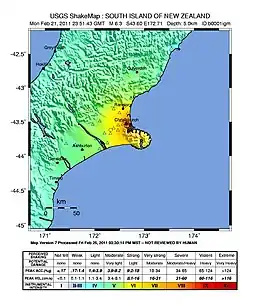 زمین لرزه کرایستچرچ ٫نیوزیلند، زمینلرزه ۶٬۳ ریشتری بود که در ظهر روز سه شنبه ساعت۱۲:۵۱ به وقت محلی ۳ اسفند ۱۳۸۹ (۲۲ فوریه ۲۰۱۱) در کشور نیوزیلند به وقوع پیوست. مرکز این زلزله در حومه جنوبی شهر و فاصله ۱۰ کیلومتری مرکز کرایستچرچ و عمق آن در کمتر از ۵ کیلومتری سطح زمین قرار داشت.[1]