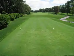 یک زمین استاندارد گلف معمولاً حدود ۳۰ یا ۴۰ هزار متر مربع وسعت دارد.[1]