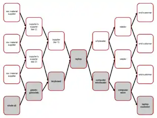 در تجارت، زنجیره تأمین (به انگلیسی: Supply chain) سیستمی متشکل از سازمانها، افراد، فعالیتها، اطلاعات و منابعی است که در عرضه یک محصول یا خدمت به مصرفکننده دخیل هستند. فعالیتهای زنجیره تأمین شامل تبدیل منابع طبیعی، مواد اولیه و اجزای سازنده به یک محصول نهایی است که به مشتری نهایی تحویل داده میشود.[1] در سیستمهای پیچیده زنجیره تأمین، محصولات استفاده شده ممکن است در هر نقطه ای که مقدار باقیمانده قابل بازیافت است، دوباره وارد زنجیره تأمین شوند. زنجیرههای تأمین زنجیرههای ارزش را بهم پیوند میدهند.[2]