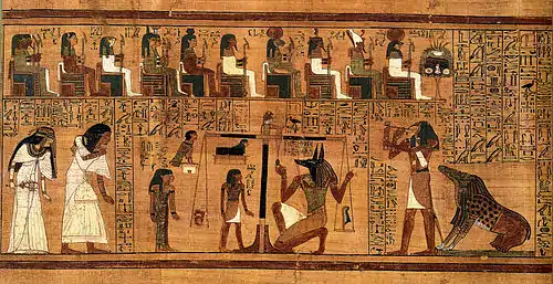 برای نخستین بار در دوران پادشاهی نوین مصر مصریان (حدود ۱۵۵۰ پیش از میلاد) از این متون استفاده شد و تا ۵۰ پیش از میلاد ادامه داشت. با توجه به این که مصریان باستان به زندگی پس از مرگ باور داشتند، نسخ مصوری از دستنوشته ها را، همراه با سایر وسایل مورد مصرف روزانه در کنار فرد درگذشته به خاک میسپردند تا در زندگی پسین و ضمن استفاده از دیگر وسایل، کتابهای مصوری را نیز برای مطالعه در اختیار داشته باشند. این دستنوشتههای نگارهدار مصری امروزه به نام کتاب مردگان نیز، یاد میشوند.