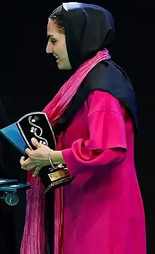 ![]() زهرا قنبری در حال دریافت جایزه خانم گل لیگ ۹۸-۹۷ در مراسم معرفی برترین های فوتبال در شهریورماه ۱۳۹۸ | ||||||