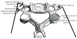 ![]() A cervical vertebra. (Transverse process labeled at upper right.) | |