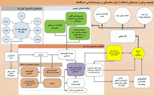 استفاده از فناوریهای محاسباتی توان بالا، به درک سیستمهای پیچیده بیولوژیکی و وابستگی متقابل سلولی کمک کرده و امکان کشف عملکرد یک سیستم را به محقق میدهد. چالش بزرگ، درک وابستگیهای متقابل بین مسیرها با توجه به پیچیدگی سیستم بیولوژیکی است. شکل مقابل، استفاده از ابزارهای محاسباتی در زیستشناسی سامانهها را نشان میدهد.[33]