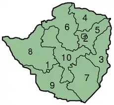کشور زیمبابوه به هشت استان و دو محدوده کلانشهری تقسیم شدهاست که عبارتنداز:
