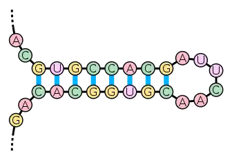 ساختار حلقهٔ سنجاق سری که در آن یک مارپیچ دو رشتهای به به یک حلقه از بازهای جفت نشده ختم میشود، یکی از ساختارهای بسیار رایج در مولکولهای آرانای است.