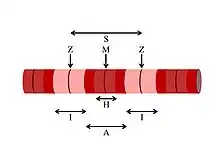هر میوفیلامنت ضخیم شامل ۲۰۰–۵۰۰ مولکول میوزین است. میوزینها ناحیه مرکزی سارکومر یعنی نوار A را اشغال میکنند و میوزین یک مجموعه بزرگ با دو زنجیره سنگین یکسان و دو جفت زنجیره سبک است. زنجیرههای سنگین در واقع پروتئینهای حرکتی میله مانند و نازکی (بطول 150 nm و ضخامت ۲ تا3nm) هستند که با یکدیگر پیچ و تاب خورده و دمهای میوزین را میسازند. زوائد یا سرهای کروی هم که در انتهای هر زنجیره سنگین وجود دارند را زنجیرههای سبک به وجود میآورند. در واقع سرهای میوزین جایگاهی برای اتصال اکتین (تشکیل پل عرضی ناپایدار بین اکتین و میوزین در حین انقباض) و ATP میباشد. به این عملسرهای میوزین فعالیت ATP آزی اکتومیوزین (actomyosin ATPase activity) گویند. صدها مولکول میوزین به گونهای آرایش یافتهاند که بخش میلهای فیلامنتهای ضخیم با یکدیگر همپوشانی داشته و سرهای آنها رو به هر دو انتهای فیلامنتهای ضخیم میباشد.