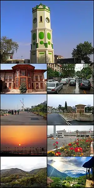 ![]() عکسها راست به چپ: نمایی از برج ساعت، خیابان قارن ساری، کاخ فاضلیها، خیابانی در ساری، بوستان ملل ساری، فرودگاه بینالمللی دشت ناز ساری، ساحل فرح آباد ساری، کوههای اطراف ساری، جاده ساری به کیاسر | |