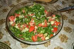 - مشارکتکنندگان ویکیپدیا. «Arab salad». در دانشنامهٔ ویکیپدیای انگلیسی، بازبینیشده در ۳ ژانویه ۲۰۱۸.