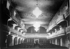 سالن در ابعاد ۳۰ متر در ۱۰ متر و دارای دو طبقه ایوان هر کدام با ۱۶ لژ شش نفره بود و حدود ۸۰۰ نفر گنجایش داشت. دورتادور طبقات و سقف و راهرو ورودی دارای گچبریهای کمنظیر بود و بهدلیل رعایت اصول صداشناسی، نیازی به استفاده از وسائل تقویت صوتی نبود.