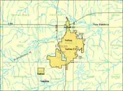 ![]() A برج آب bearing the city's name on the south-east side of Salina. | |