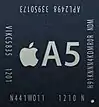 ۳۲ نانومترHKMG[10] | ۱۲۳ mm۲[10] | ARMv7s | 1.۴ GHz dual-core Swift | L1: 32 kB instruction + ۳۲ kB data, L۲: ۱ MB | PowerVR SGX554MP4 (quad-core) @ ۲۸۰ MHz * vec۴ + ۱ scalar: ۴х۲+۱=۹ * ۳۲ х ۰٫۲۸۰ х ۹ = ۸۰ GFLOPS[2] | ۳۲-bit Quad-channel ۵۳۳ MHz LPDDR۲-۱۰۶۶ (۱۷ GB/sec)[11] | October ۲۰۱۲ |