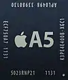 ۳۲ نانومترHKMG[5] | ۹۶٫۷۱ mm۲[5] | ARMv7s | 1.۳ GHz[6] dual-core Swift[7] | L1: 32 kB instruction + ۳۲ kB data, L۲: ۱ MB[8] | PowerVR SGX543MP3 (tri-core) @ ۲۵۰ MHz * vec۴ + ۱ scalar: ۴х۲+۱=۹ * ۱۲ х ۰٫۲۵۰ х ۹ = ۲۷GFLOPS[2] | ۳۲-bit Dual-channel ۵۳۳ MHz LPDDR۲-۱۰۶۶[9] (۸٫۵۲۸ GB/sec) | September ۲۰۱۲ | |