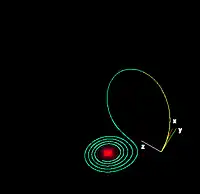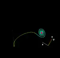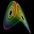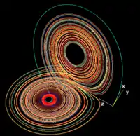 تصویری از جاذب لورنز در نزدیکی یک چرخه متناوب.
