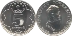![]() عکسی از پشت و روی یک سکه به ارزش ۵ سامانی | |