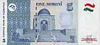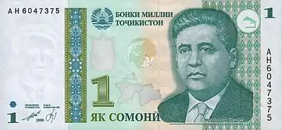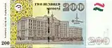 | اسکناسها | 1, 5, 20, 50 diram, 1, 3, 5, 10, 20, 50, 100, 200, 500 somoni |
