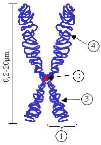 به علت تراکم زیاد DNAهای سلول در این قسمت‚ پیش بینی میشود که این قسمت از کروموزوم بیشترین رنگپذیری را داشته باشد. اما به علت وجود پروتئینهای کینه توکوری این قسمت رنگپذیری کمی دارد.