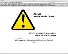 - «پایگاه خبری انصاف: آمریکا 2000 سایت ایرانی را مسدود کرد». انصاف نیوز. ۲۰۱۴-۰۳-۱۸. دریافتشده در ۲۰۱۵-۰۲-۱۷.
