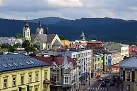 ![]() Town panorama with the Cathedral and the کوههای کارپات in the background. | |