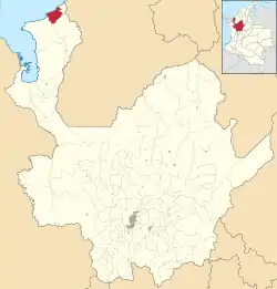 ![]() Location of the municipality and town of San Juan de Urabá in the Antioquia Department of Colombia | |