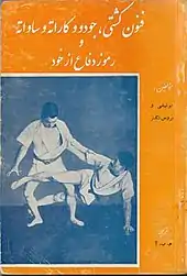 این کتاب فنون کشتی، جودو و کاراته و ساواته و رموز دفاع از خود اثر یونیشی و بروس تگنر به برگردانی م.ب. آ نام دارد.[25]