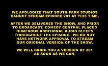 متن سانسور شده ساوت پارک در قسمت ۲۰۱ که بعدها منتشر شد، اینگونه بود:
