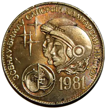 تصویر فضانوردان سایوز۳۹ روی سکه
