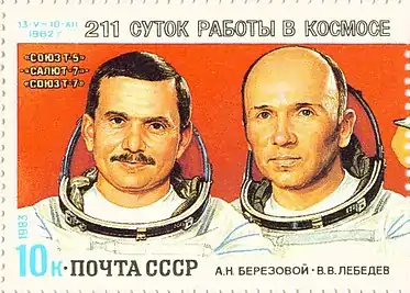 تصویر فضانوردان سایوز تی۵ روی تمبر