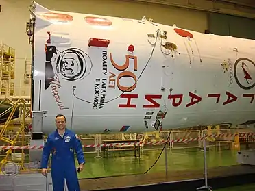 رونالد جی. گاران، جونیور. در مقابل موشکی که تصویری از گاگارین بر آن نقش بستهاست