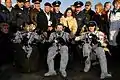 فضانوردان تیامای-۹ پس از فرود (انوشه انصاری در پشت سر فضانوردان)