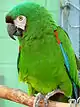 طوطی زرد آمازون که برای استتار در جنگل به رنگ سبز درآمده است.