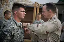 کاپیتان ارتش، گریگوری، در حال دریافت ستاره نقرهای از دریاسالار مایک مولن رئیس ستاد مشترک ارتش ایالات متحده