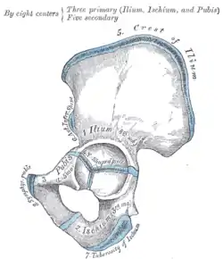 Plan of ossification of the hip bone.
