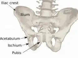 ![]() Overview of Ilium as largest bone of the pelvis. | |