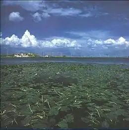 از اواسط دههٔ هشتاد به علت خشکسالیهای طولانی مدت و برداشت بیرویه آبهای زیرزمینی، چشمههای تأمینکنندهٔ آب این دریاچه چندین بار بهطور کامل خشک شده و همین امر سبب از بین رفتن کامل نیلوفرهای آبی شد. با این حال با تلاش پردیس کشاورزی و منابع طبیعی دانشگاه رازی در اردیبهشت ۱۳۹۵ تعدادی بوتهٔ نیلوفر آبی توسط پروفسور دانیال کهریزی تکثیر و کشت شده و در بستر دریاچه کاشته شد تا از نابودی کامل آن جلوگیری به عمل آید.[1]