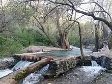 این چشمه در شهرستان نهاوند و ۱۸ کیلومتری جنوب غربی شهر نهاوند و ۲ کیلومتری تپه باستانی گیان و در شمال شهر گیان قرار گرفتهاست و دارای درختان چنار است. تپه گیان درختان زیاد دارد.