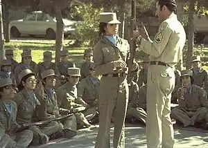 هماکنون در ایران فقط پسران و مردان به سربازی اعزام میشوند ولی پیش از انقلاب ۱۳۵۷، دختران نیز به سربازی فرستاده میشدند؛ همانگونه که هماکنون نیز در برخی از کشورها[85] همچون اسرائیل دختران نیز خدمت نظامی میکنند.[86][87][88] پس از انقلاب ۵۷، در هنگام بررسی اصل ۱۵۱ قانون اساسی، صافی گلپایگانی، سربازی زنان را یک «بدعت نادرست از سوی حکومت پیشین» دانست و گفت: