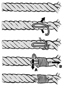 - سربندی ساده: سادهترین نوع سربندی که در آن رشتهای نازک را برای استفادهٔ موقت به دور طناب اصلی میپیچند.