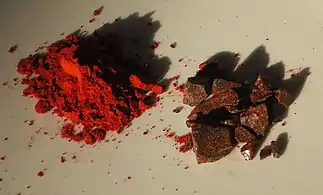 رنگدانه سرخ، ساخته شده از سولفور سیماب. این رنگدانه ای بود که در نقاشیهای دیواری Pompeii به کار رفته و برای شروع رنگ آمیزی lacquerware از سلسله سونگ استفاده شدهاست.