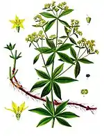 علیرغم گل سبز مایل به زرد، ریشه گیاه Rubia tinctorum یا گیاه غریب، رایجترین رنگ قرمز مورد استفاده از دوران باستان تا قرن ۱۹ را تولید میکرد.