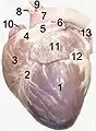 | تصویری از ابتدای آئورت در نمای فرونتال. سرخرگ براکیوسفالیک سومین شاخه از آئورت و نخستین شاخه از قوس آئورت است. قلب در پایین و چپ نشان داده نشده است. | |