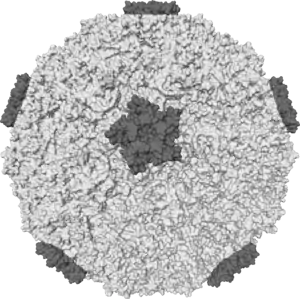 | نمایش سطح مولکولی یک راینو ویروس. | |