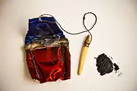 قدیمیترین کاست هند یعنی کولیها نیز از سرمه برای آرایش بهره میگرفتند. مادران در شبه قاره هند و برخی نواحی پیرامونی، به چشم نوزادان و کودکان سرمه میکشیدند. به باور آنها این کار «سوی چشم را نیرو میبخشد» و «علیه چشم بد» نگهداری میکند.[2] یک نوع دیگر از سرمه نخهای تابیده رنگی است که برای دور پشتی استفاده میشود