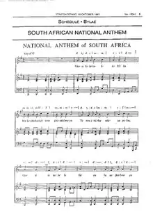 | اشعار | Enoch Sontonga, 1897 C. J. Langenhoven, 1918 Jeanne Zaidel-Rudolph، ۱۹۹۵ |